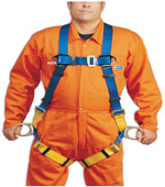 This full body harnesses is used for cleaning the vessel having 2D' rings on shoulder straps and 1D' ring at the back with 3 ropes fitted on a ring on top which makes lifting a person much more easier in standing position from any place.