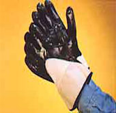 Specifications: Recessed diamond-embossed palms and fingers provide a sure grip when handling wet or dry materials. Cotton flock lining absorbs perspirations, adding to long-wearing comfort 13''L